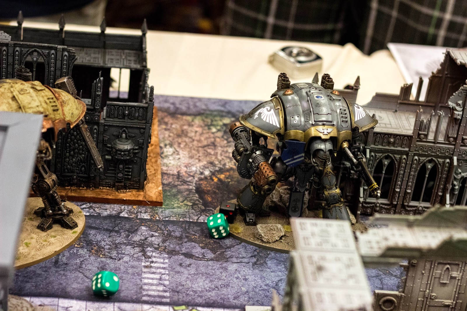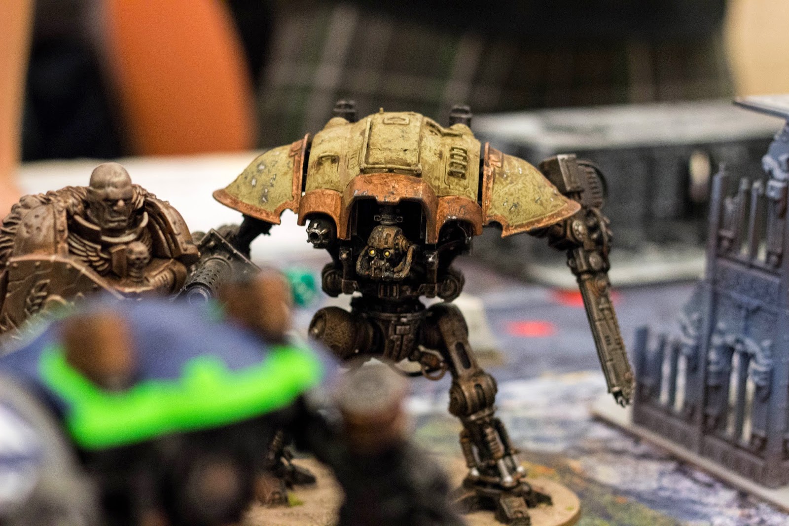 As a side note, this was actually the second Knight I had painted up in this scheme. I had a horrible problem with some matte spray, that I was later to find out was because the can had been left in a cold garage, that sprayed texture all over the model and ruined it. The green knight/brown in the pictures is actually this knight having be repainted.