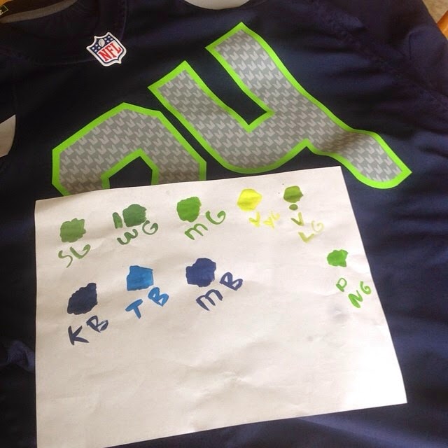 My first task was to do some color matching. I'm not a huge fan of mixing my own colors so I picked up a bunch of different blues and greens to match to my favorite Jersey. After some test swatches, I got the colors I wanted. One from the Citadel paint line and one from the P3 line. The green still didn't "pop" as much as I wanted it too though it was pretty close. The Blue was pretty spot on.